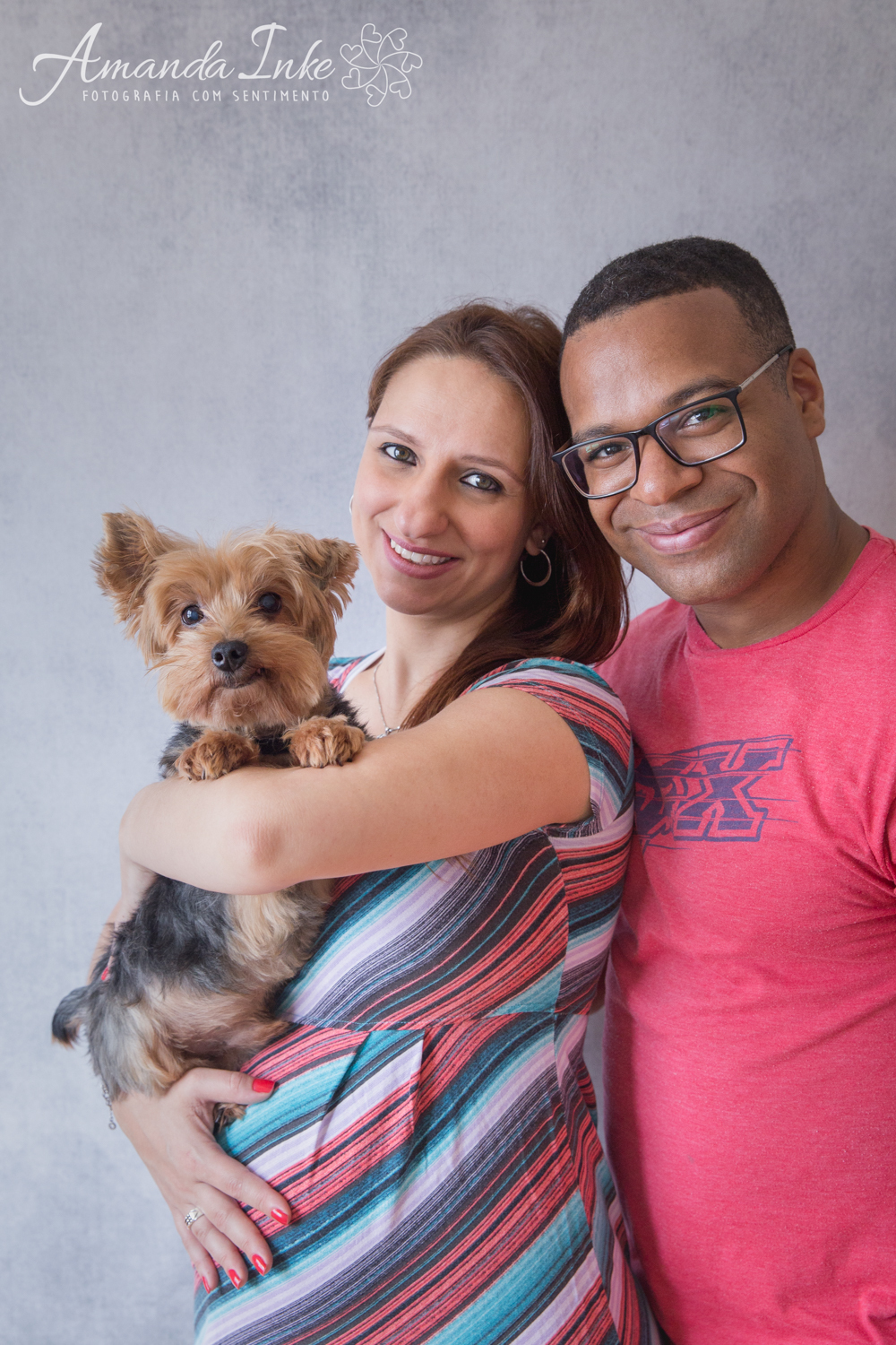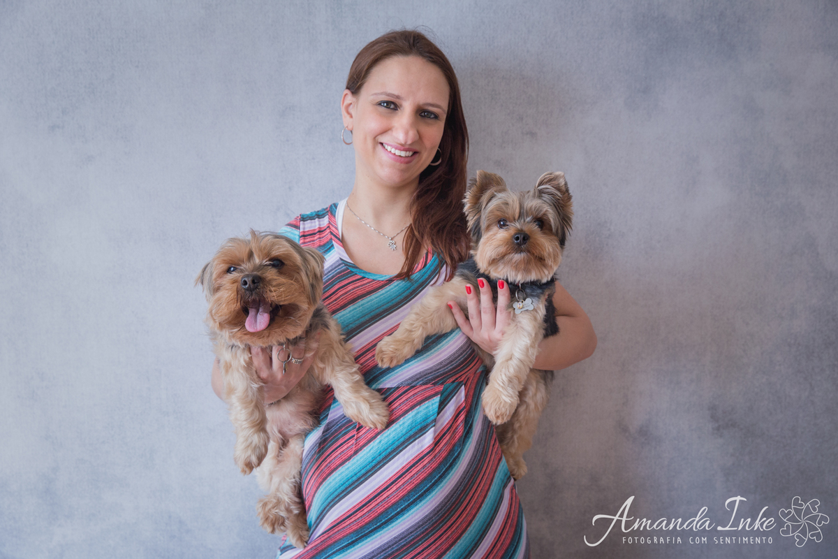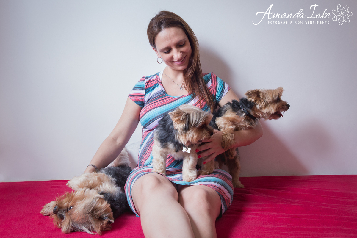 A vanessa me procurou para fazermos as fotos de gestante, e me disse que queria fazer em casa para poder tirar fotos com os três filhos de quatro patas dela. Foi um desafio, porque eles são bastante elétricos. Mas com muita paciência e amor, conseguimos as fotos que ela tanto queria.